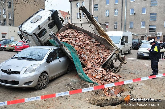 Ciężarówka wpadła do piwnicy