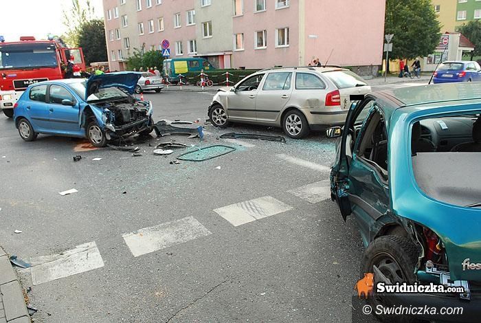 Fiesta kontra dwa inne auta, kierowca w szpitalu