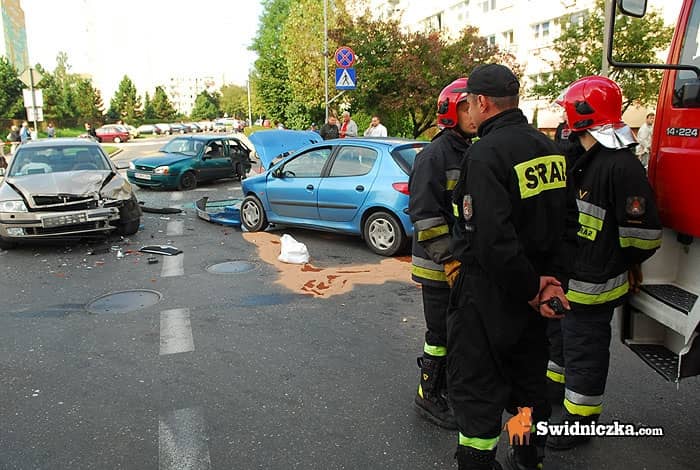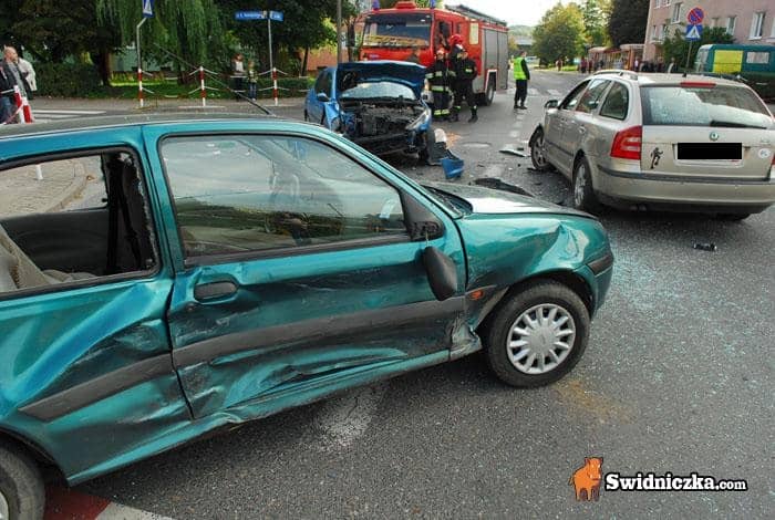 Fiesta kontra dwa inne auta, kierowca w szpitalu