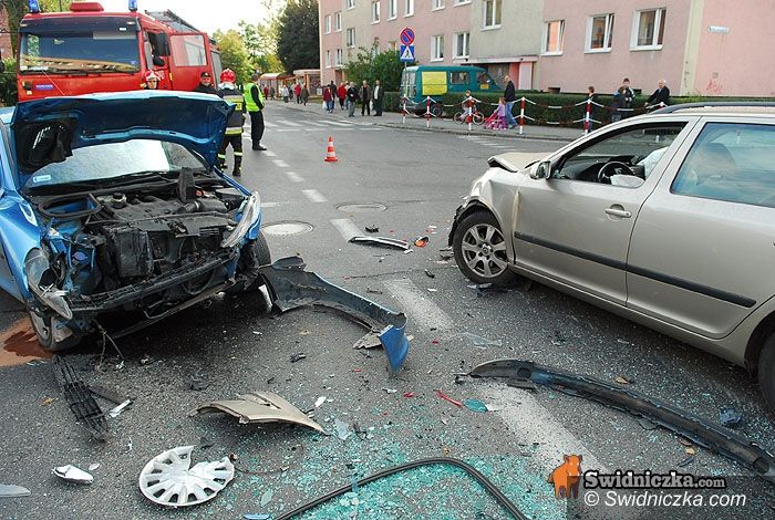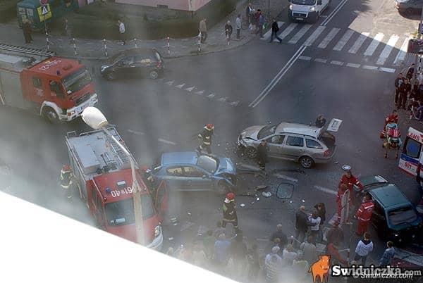 Fiesta kontra dwa inne auta, kierowca w szpitalu