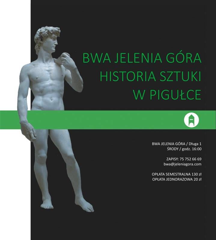 Zapraszamy na cykl wykładów popularyzujący wiedzę z zakresu historii sztuki. Cykl adresowany jest zarówno do osób dorosłych, jak i do młodzieży. Do wszystkich osób pragnących poszerzyć swoją wiedzę z zakresu sztuk wizualnych. Omawiamy najważniejsze kierunki, prądy i tendencje w sztuce europejskiej i światowej. Przedstawiamy najwybitniejszych artystów oraz ich dzieła. Nasz cykl jest doskonałą okazją do oswojenia się ze sztuką, zrozumienia jej i samodzielnego interpretowania. Umożliwia uczestnikom lepszy odbiór, a więc pełniejsze przeżywanie, zarówno sztuki dawnej, jak i współczesnej.