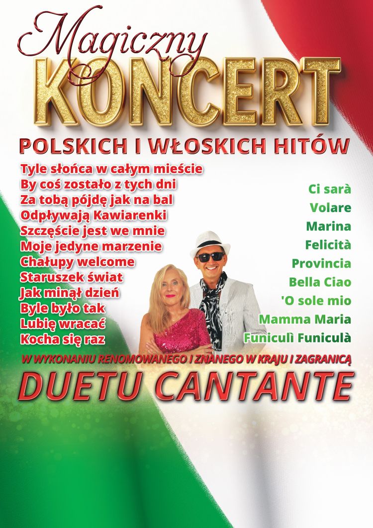 Zapraszamy na magiczny koncert polskich i włoskich hitów do Pawilonu Edward Plac Zdrojowy 4 w Jeleniej Górze (naprzeciwko Muszli Koncertowej w Parku Zdrojowym ) w czwartek 19 03 o godz 19 .