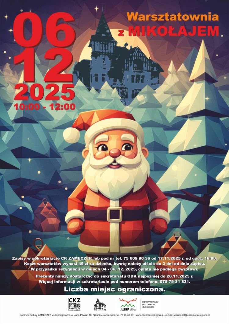 Liczba miejsc ograniczona – zapisy ruszają od 17.11.2025 r. o godz. 10:00 w sekretariacie CK Zameczek lub telefonicznie pod numerem75 609 90 36