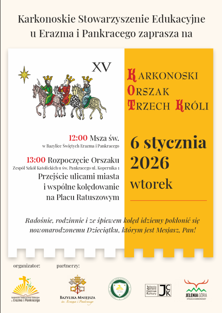 Orszak Rusza o godz. 13 - rozpoczęcie przy Liceum Katolickim (ul.l Kopernika 1), przejście ulicami: Boczną Plac Ratuszowy, Jasną, Kard. S. Wyszyńskiego, Bankową, Szkolną - Plac Ratuszowy. Zakończenie ok. godz. 15. Przed Orszakiem w Bazylice Msza św. o godz. 12.