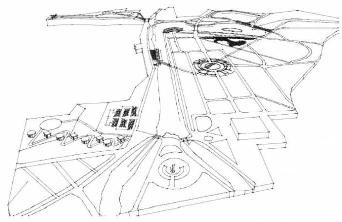 Szkic rewitalizowanego założenia parkowego – Park Centralny w Świdnicy.