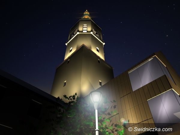 Wizualizacja: wieża ratuszowa nocą.