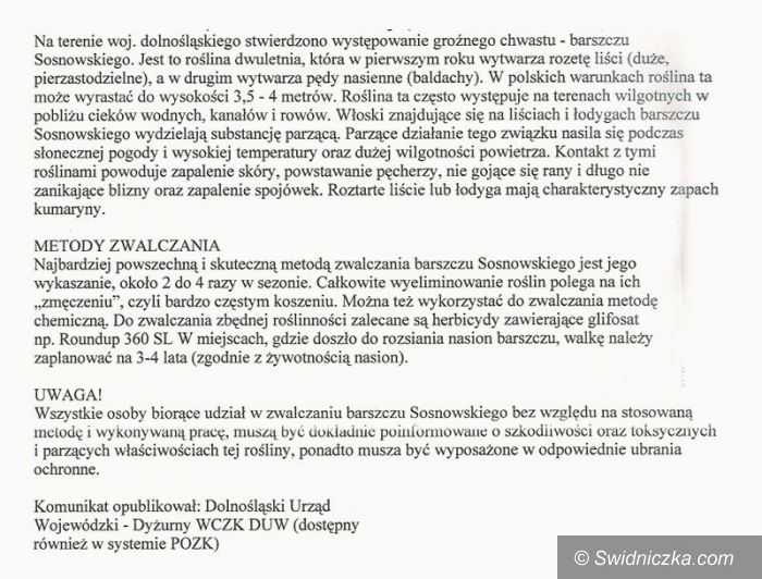 Mniej Barszczu Sosnowskiego