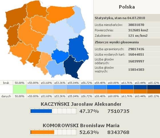 Wyniki głosowania w kraju, dane z 95.01% komisji.