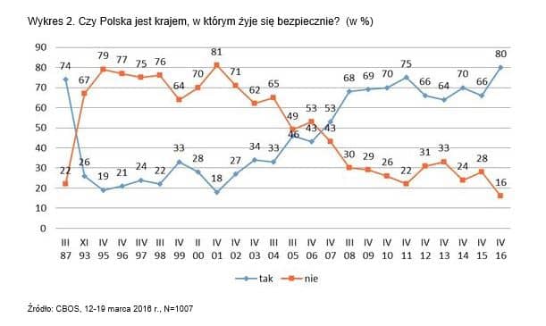 Rekordowy wskaźnik poczucia bezpieczeństwa Polaków
