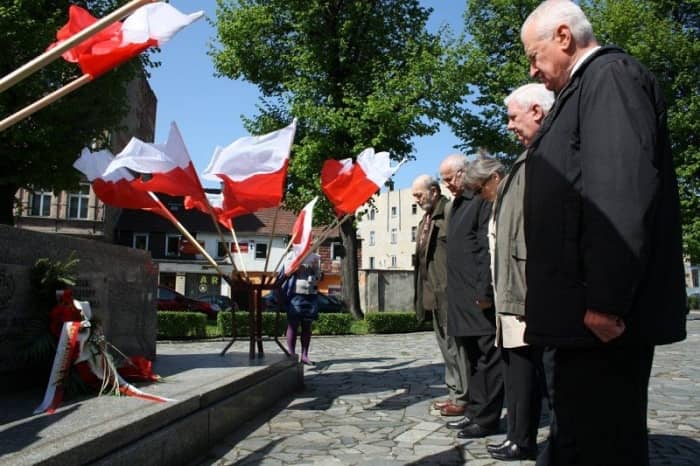 Pod pomnikiem na pl. Grunwaldzkim złożono kwiaty i wieńce.