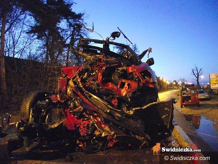Tyle zostało z kabrioleta po poniedziałkowym wypadku na ul. Łącznej w Świdnicy.