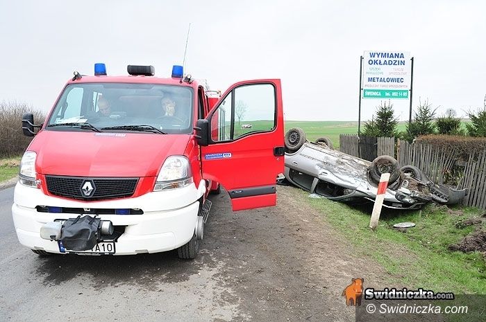 Kobieta jadąca oplem astrą butem rozbiła szybę, aby wydostać się z auta po kolizji w Grodziszczu.