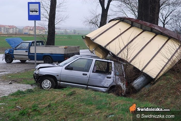 Tico staranowało przystanek po tym, jak uderzył w nie polonez.