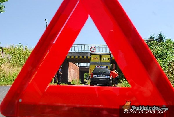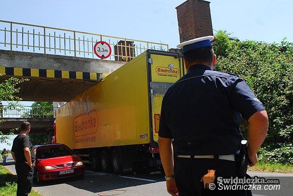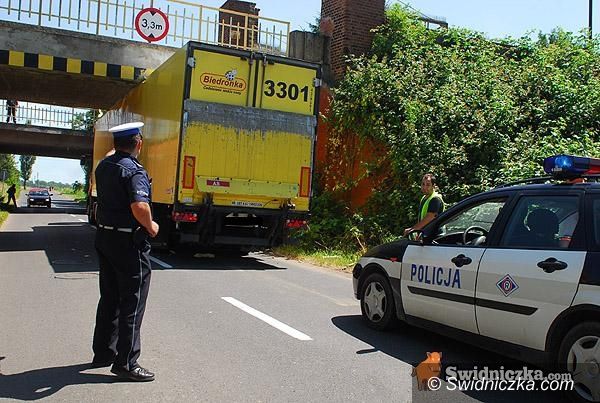 Tir uwięziony pod wiaduktem