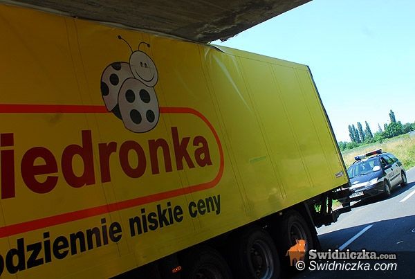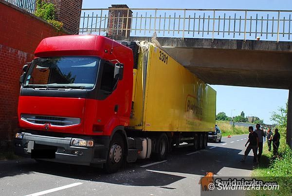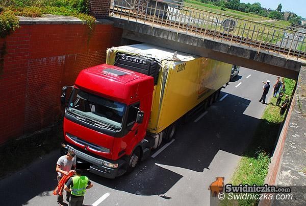 Tir uwięziony pod wiaduktem