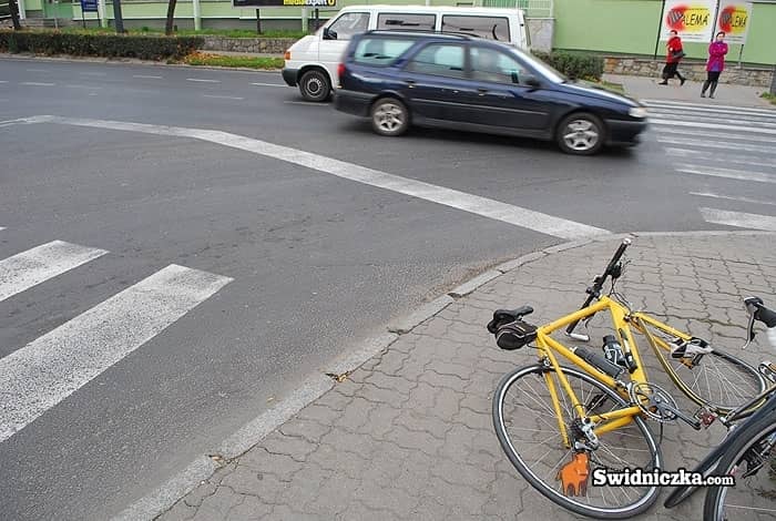 Potrącony rowerzysta na skrzyżowaniu Wrocławska–Wodna w Świdnicy.