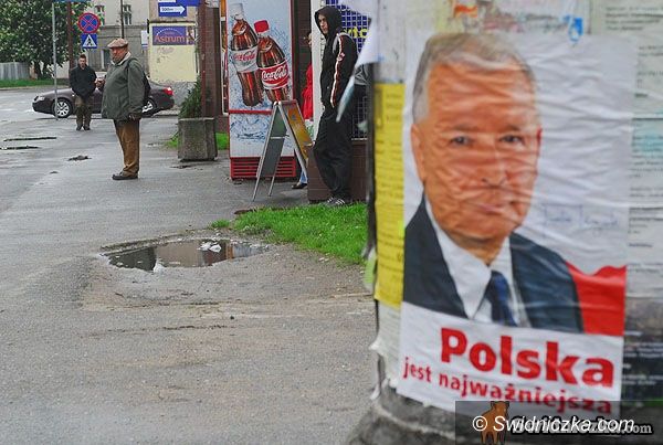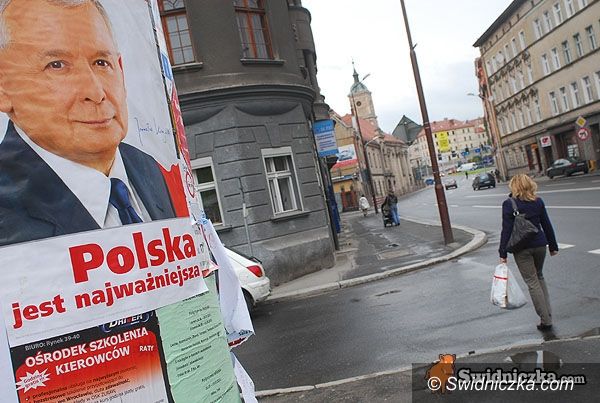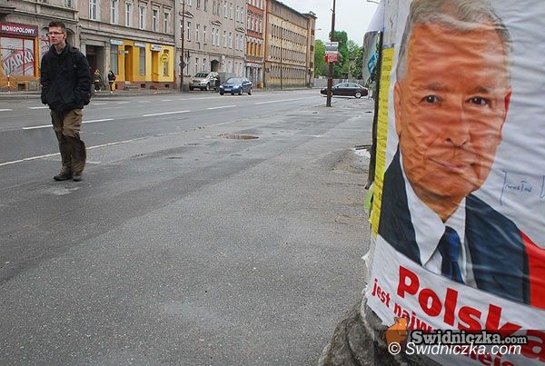 Plakaty Jarosława Kaczyńskiego wiszą już w Świdnicy.