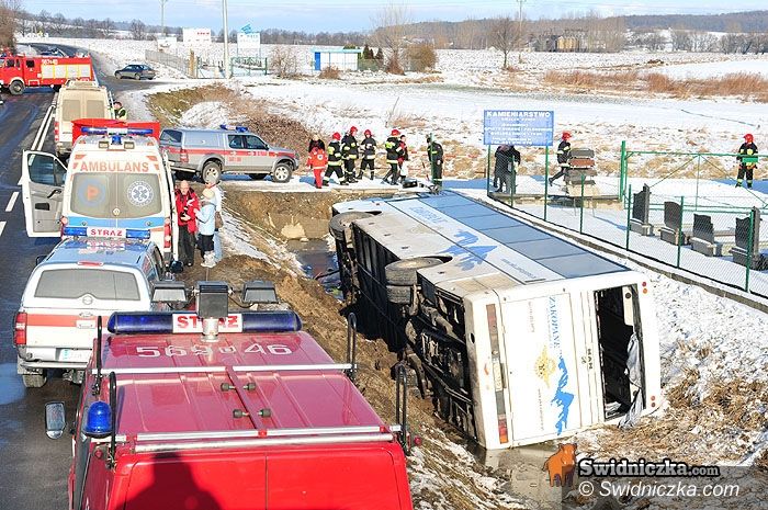 Wypadek autobusu w Strzegomiu [aktualizacja z godz. 17.40]